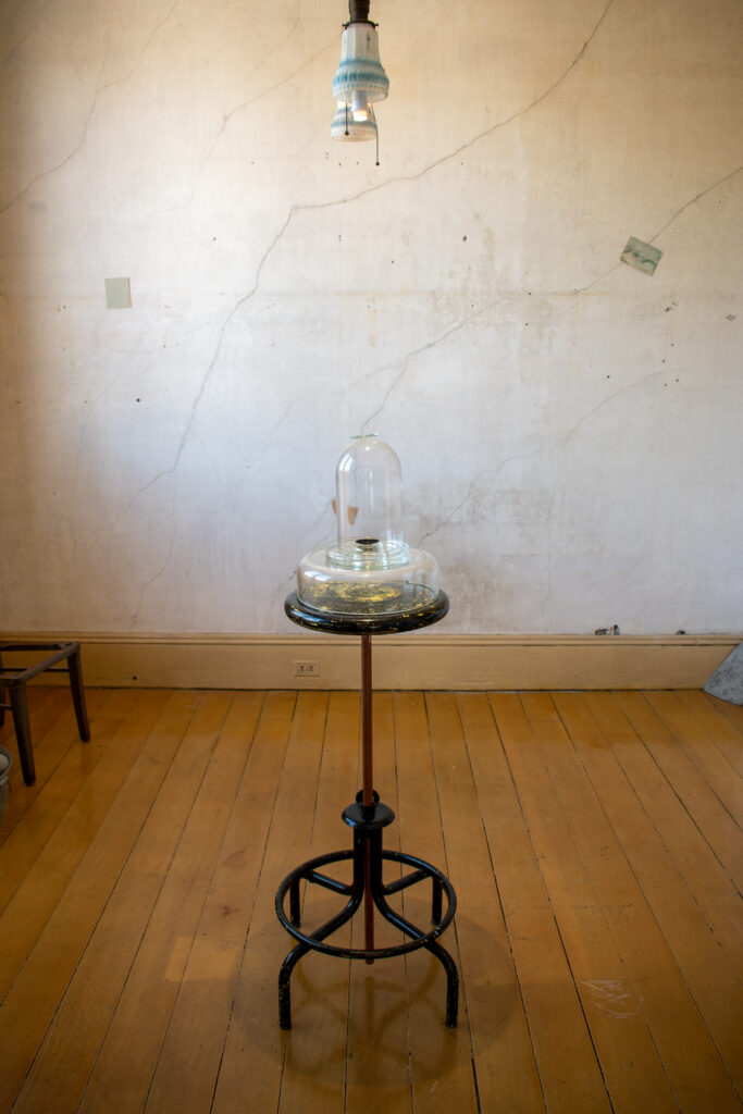 Alongside their works, many never before shown works by David Ireland will be on display for the first time in the house. One is a monotype from Ireland’s Thangka series, prints made using paint, shoe polish, and layers of ink. Both artists will also collaborate in curating works of Ireland’s, including small works made using cement, wood, and sanding blocks.