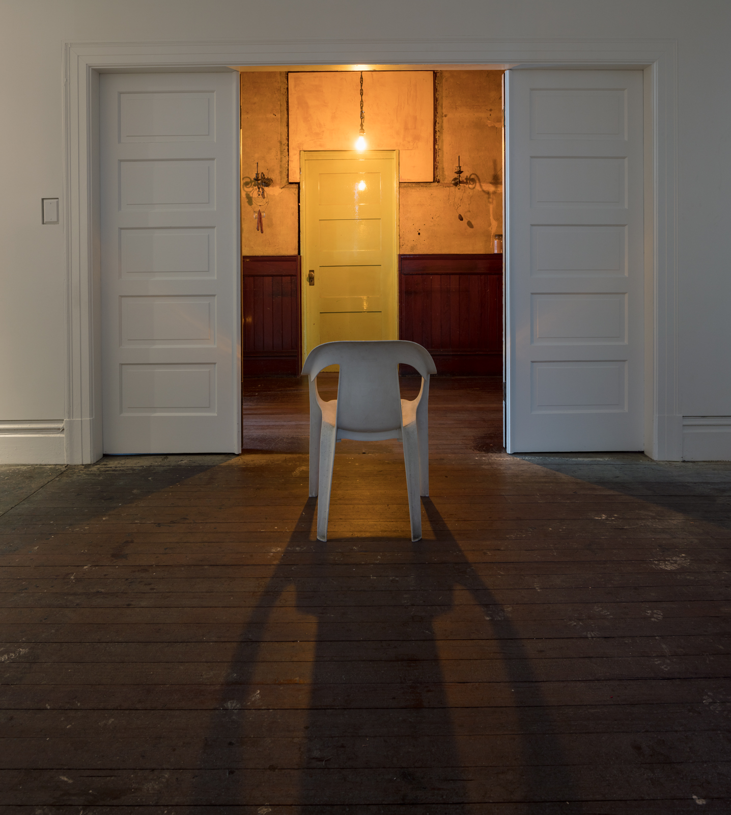 Michael E. Smith, the exhibition, creates a dark, humorous, web–like narrative, spun amidst the entire David Ireland House at 500 Capp Street. Designed with a formal sparseness, there’s a theatricality to Smith’s installations in both his sculptures and his video work. Using only existing natural light sources—or sometimes none at all—Smith spends time reading the room/s, crafting relationships, and creating dialogues between objects and given spaces.